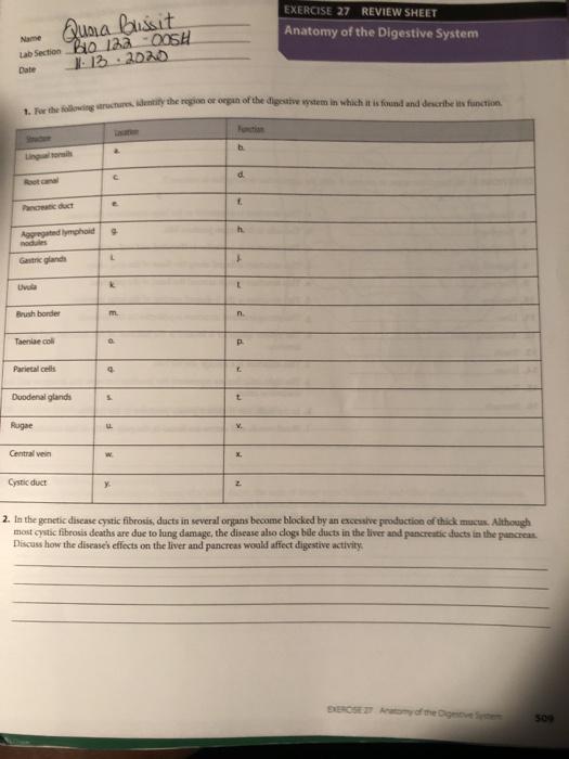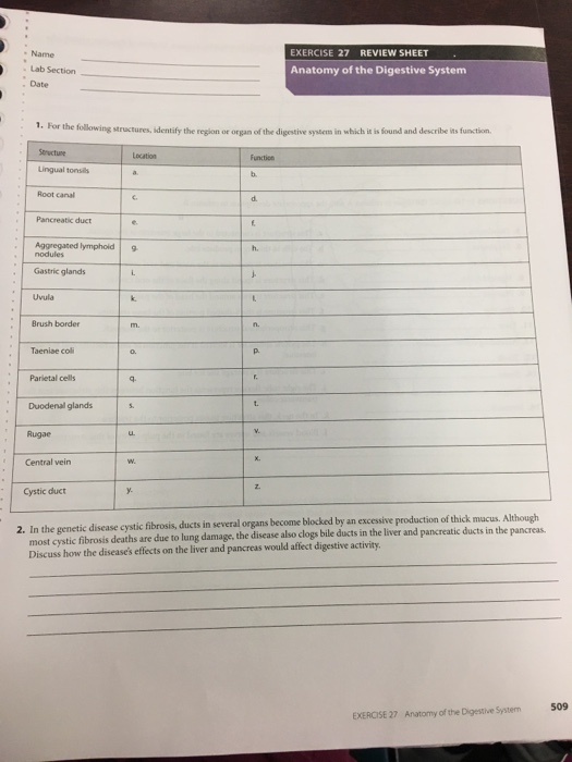 The system breaks food extracts nutrients from it and converts them into energy. Fill in the table to complete the information. The Digestive System Name.